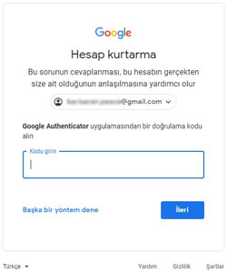 Gmail şifremi unuttum diyorsanız ve önceki adımlarda gerekli şartları sağlayamadıysanız daha bir çok yöntem bulunuyor. Google Authenticator ayarlaması yaptıysanız, önceden bu hesaba girmediğiniz ya da tanımlı numarayı kullanmayan bir telefon ile Google Hesap Kurtarma imkanınız var demektir. Tek yapmanız gereken Google Authenticator uygulamasını açıp anlık oluşturulan şifreyi girmek.